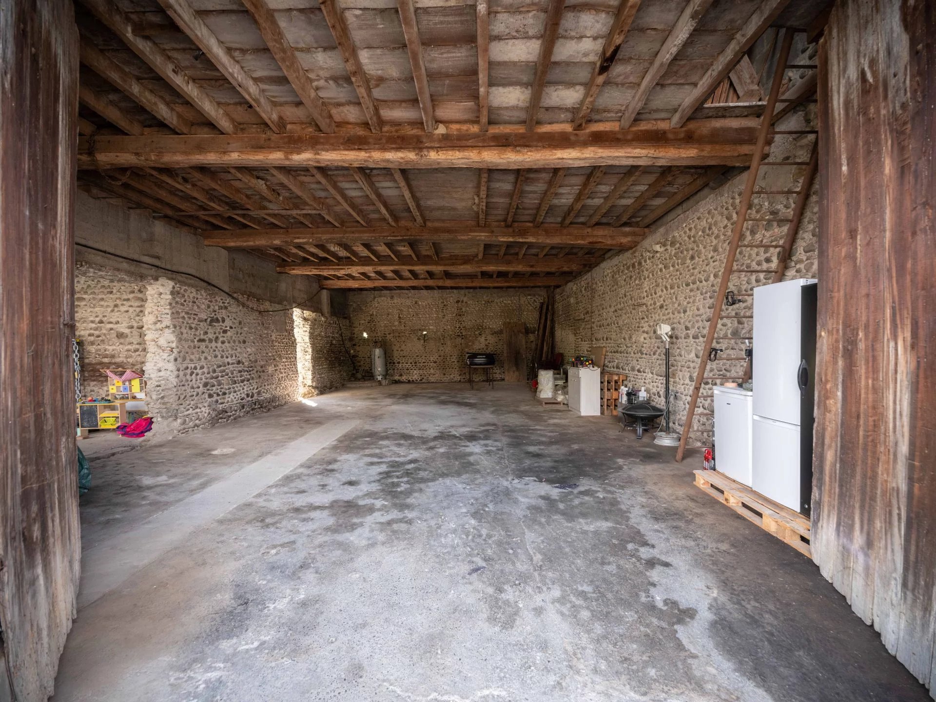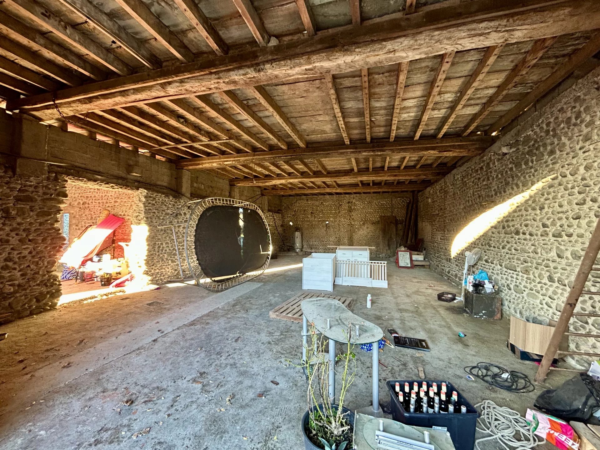 Laissez libre cours à votre imagination en rénovant cette magnifique grange en galets d'environ 500 m² sur une parcelle de 1 380 m².